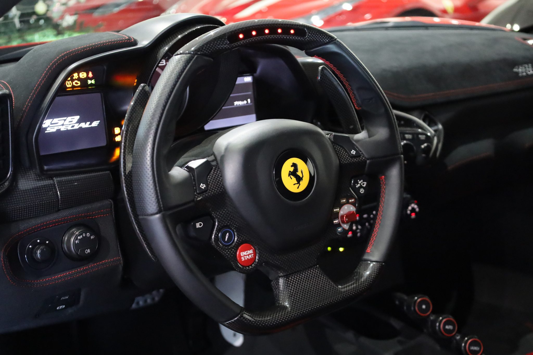 | 装備 | ・正規ディーラー車 ・レーシングストライプ ・カーボンレーシングシート ・ヘッドレスト跳馬刺繍 ・カーボンファイバーエンジンカバー ・LED付カーボンファイバー製ステアリング ・カーボンファイバー製サイドステップ ・スクーデリアフェラーリエンブレム ・20インチ鍛造ホイール ・ブレーキキャリパーレッド ・レブカウンターレッド ・スペアタイヤ ・取説 ・ワランティー ・スペアキー |