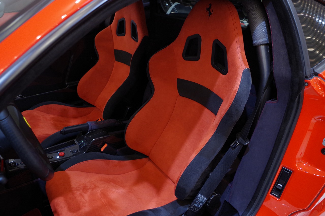 | 装備 | ・正規ディーラー車 ・カーボンファイバーレーシングシート ・カーボンブレーキ ・カーボンファイバードアミラー ・カーボンインテリア ・カーボンドアパネル ・アルカンターラインテリア ・ヘッドレスト跳馬刺繍 ・スクーデリア フェラーリ シールド ・取扱説明書 ・ワランティブック ・スペアキー |